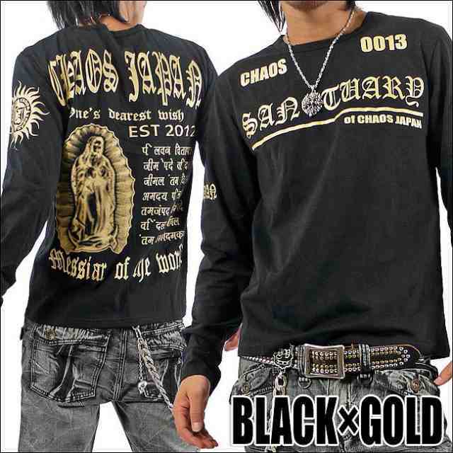 > CHAOS JAPAN SUN バックマリア英字プリントロンT 長袖Tシャツ ch-ry-1003新品ブラック×ゴールド M