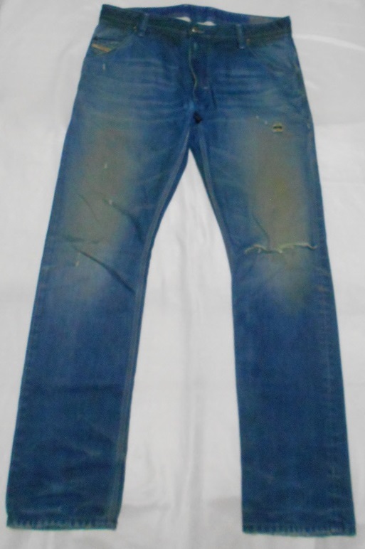 > DIESEL ディーゼル KROOLEY ブルーアイコン デニムジーンズ 0811P イタリア製 ダメージ クラッシュ W34