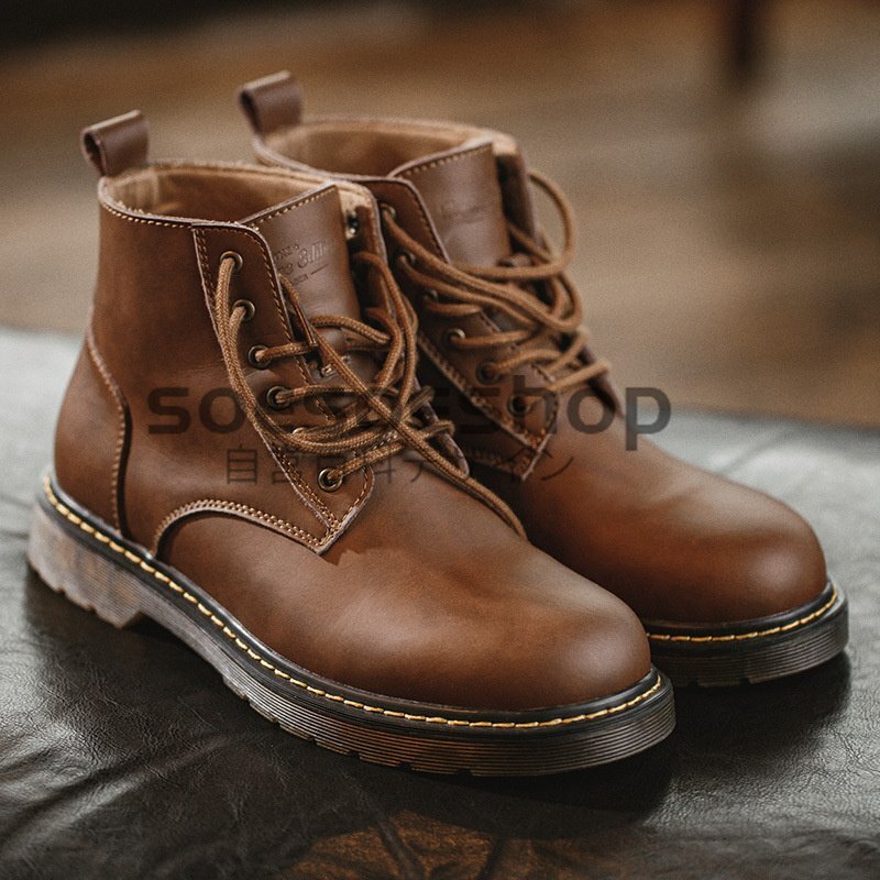 - ブーツ メンズ 本革 牛革 アメカジ ワークブーツ ミリタリーブーツ メンズ靴 アウトドア ブラウン 24.5~27cm