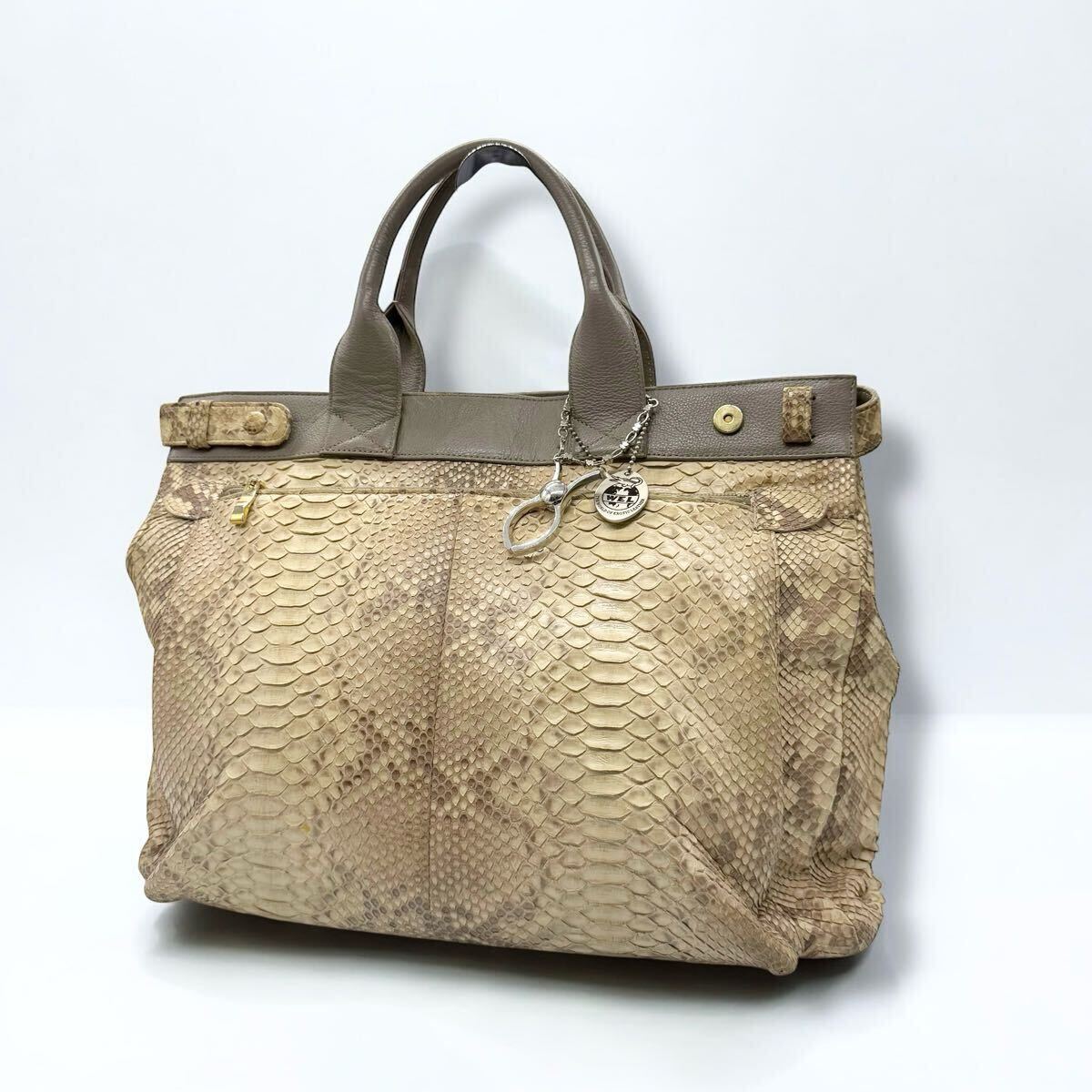 - A4可 WEL MARK ダイヤモンドパイソン トートバッグ エキゾチックレザー パイソン 蛇革 ハンドバッグ ウェルマーク 3202