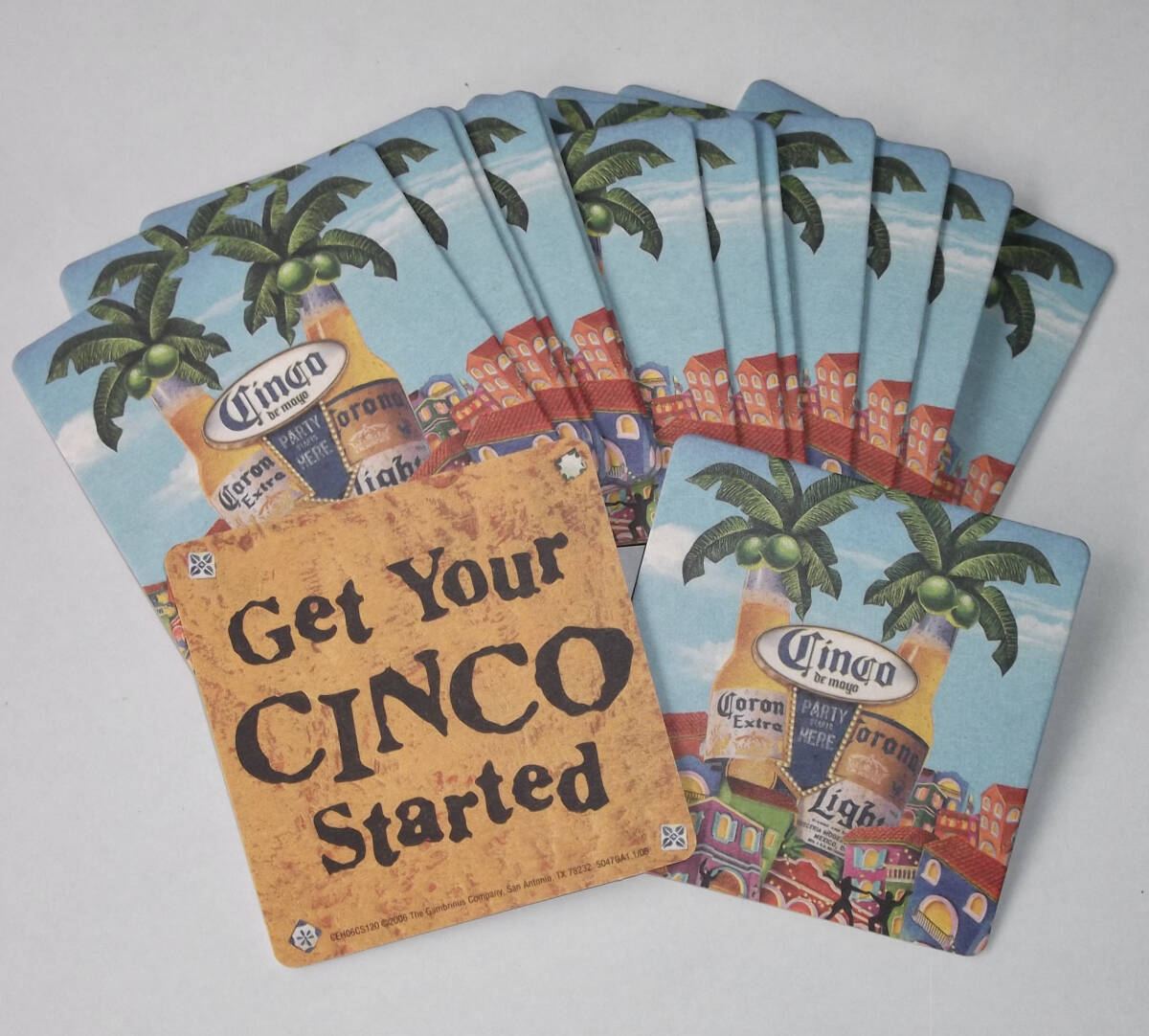 - 古い 紙製 コースター 14枚 CORONA BEER コロナ ビール CINCO de Mayo シンコ メキシコ 休日 祝日 海外 英語 酒店 酒屋 バー ノベルティ