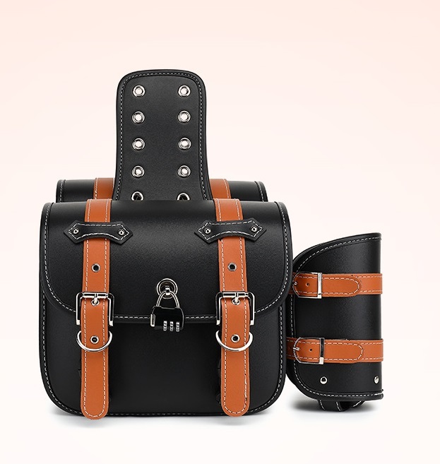 - 新品未使用新作サイドバッグ 左右2個セット バイク用シートバッグ PU 南京錠付き防水鍵 ケース 小物入れ ツーリング 33*25*13cm (ブラウン)