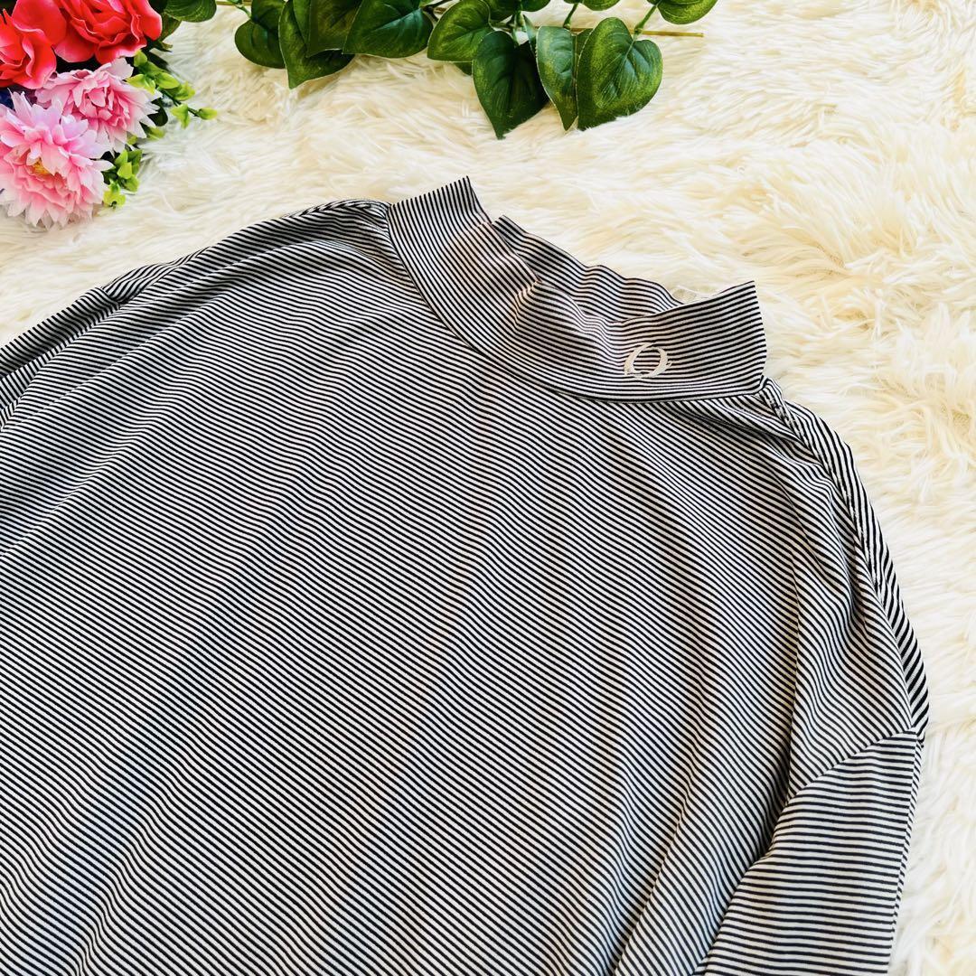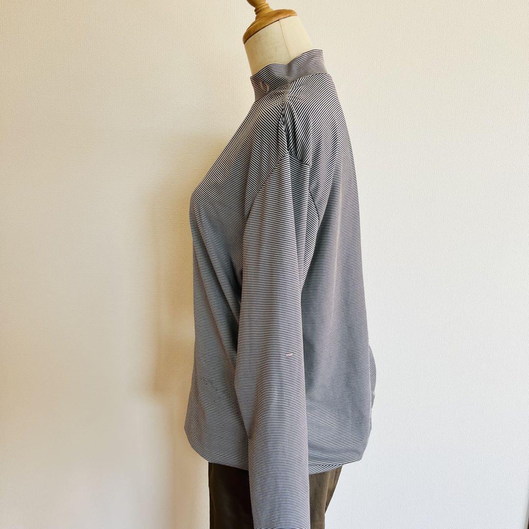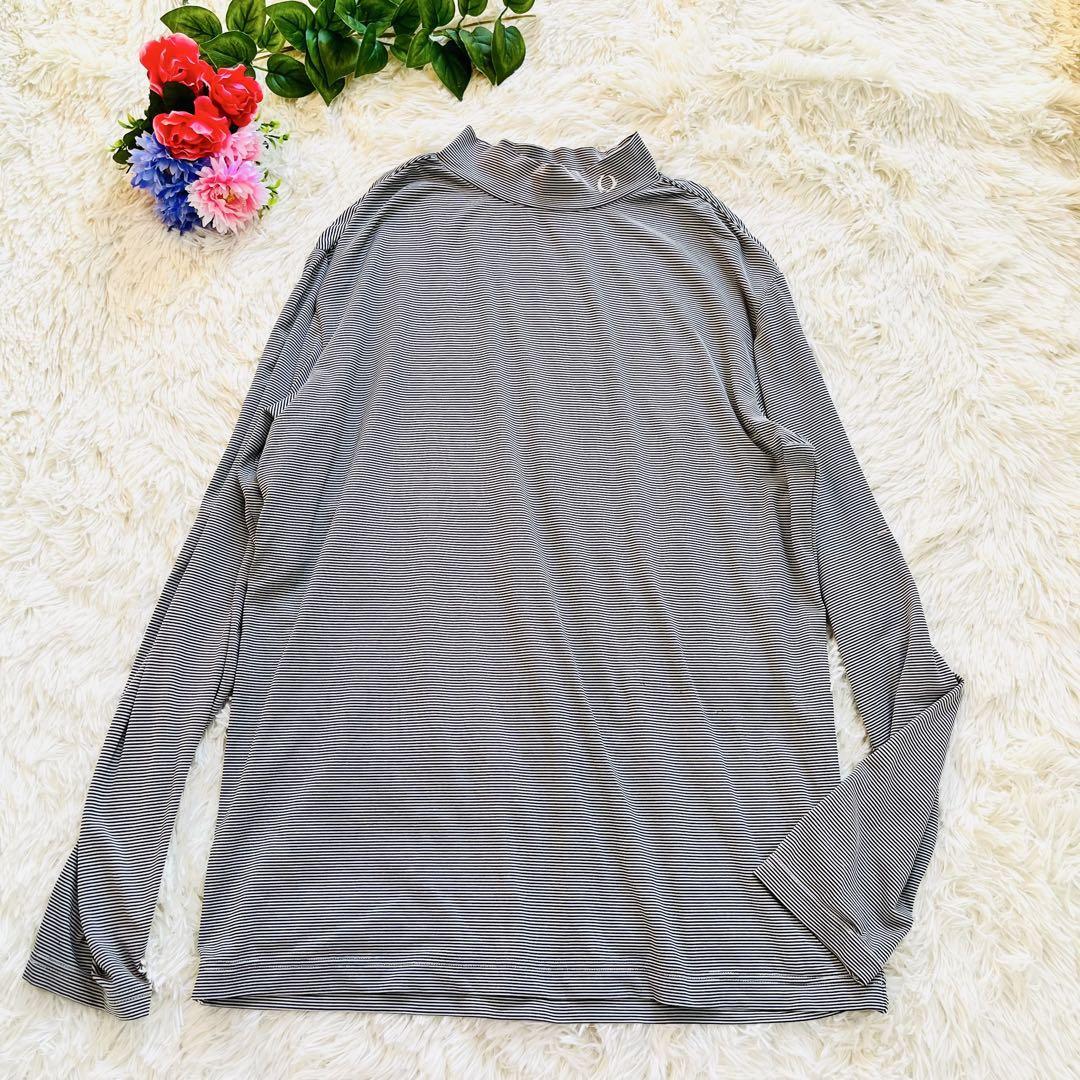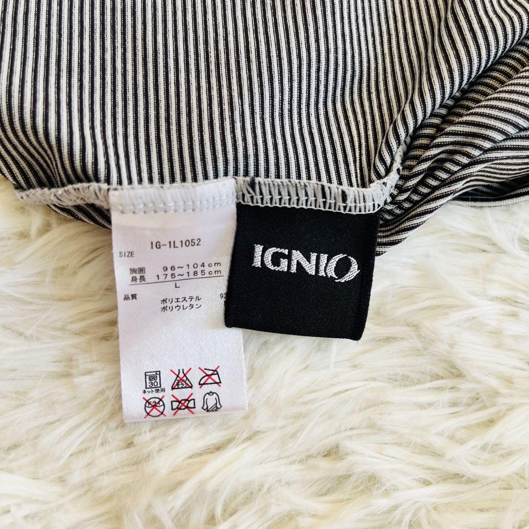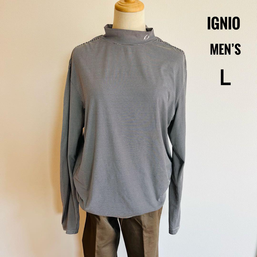 - IGNIO イグニオ メンズ ボーダー モックネック 刺繍ロゴ 長袖Tシャツ L ブラック