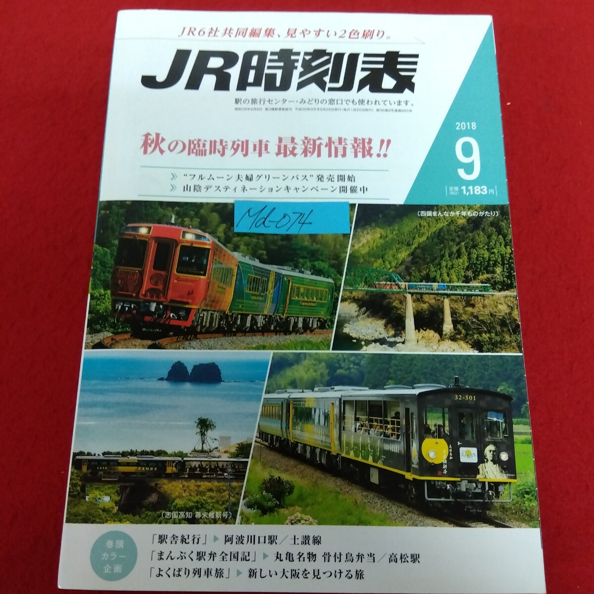 > Md−074/JR時刻表 2018年9月号 駅舎紀行・阿波川口駅/土讃線 まんぷく駅弁全国記 丸亀名物 骨付鳥弁当/高松駅 よくばり列車旅/L10/70425