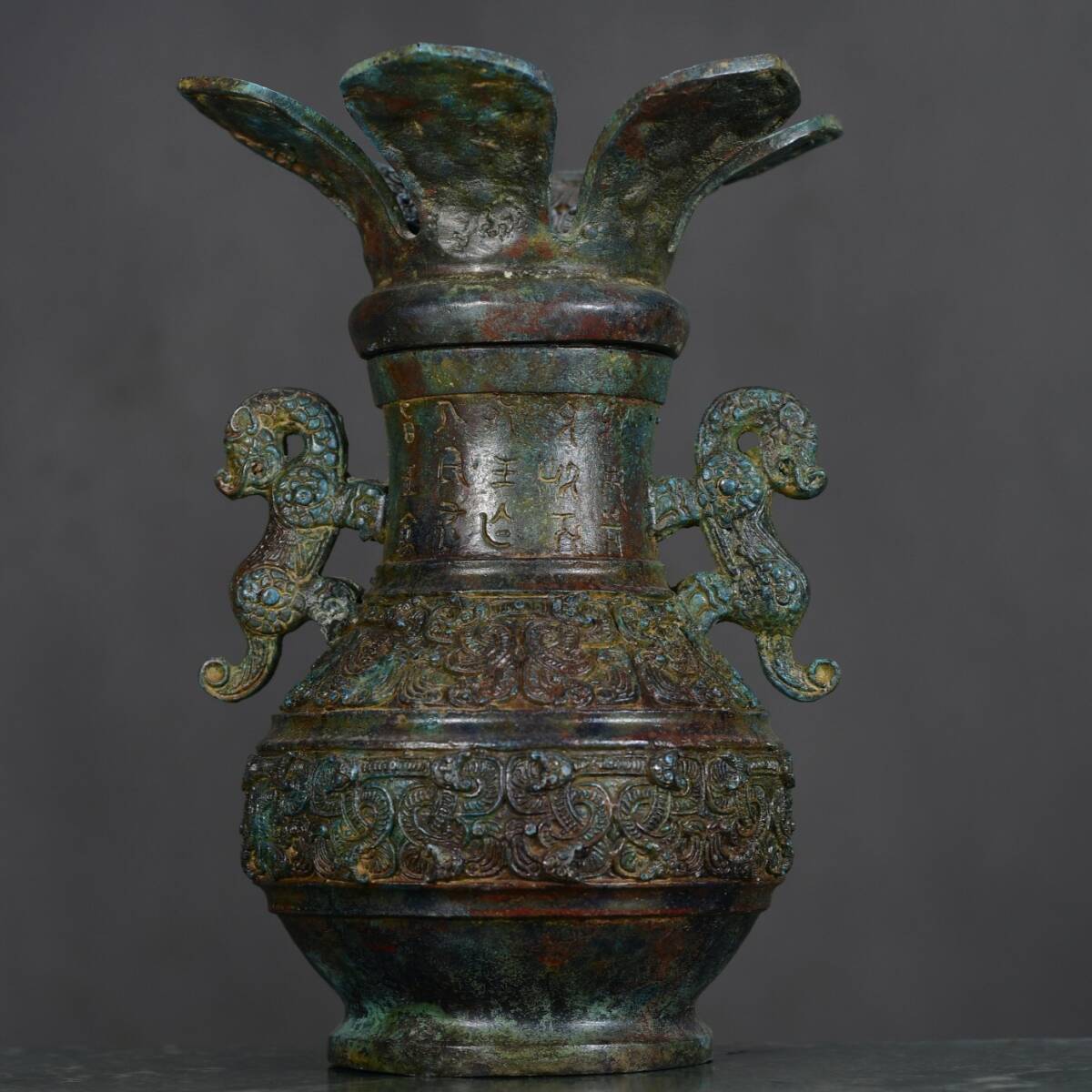 - 『館蔵珍品 戦 青銅製 雙龍瓶 青銅器』置物 賞物 貴重物品 収蔵品 中国古美術