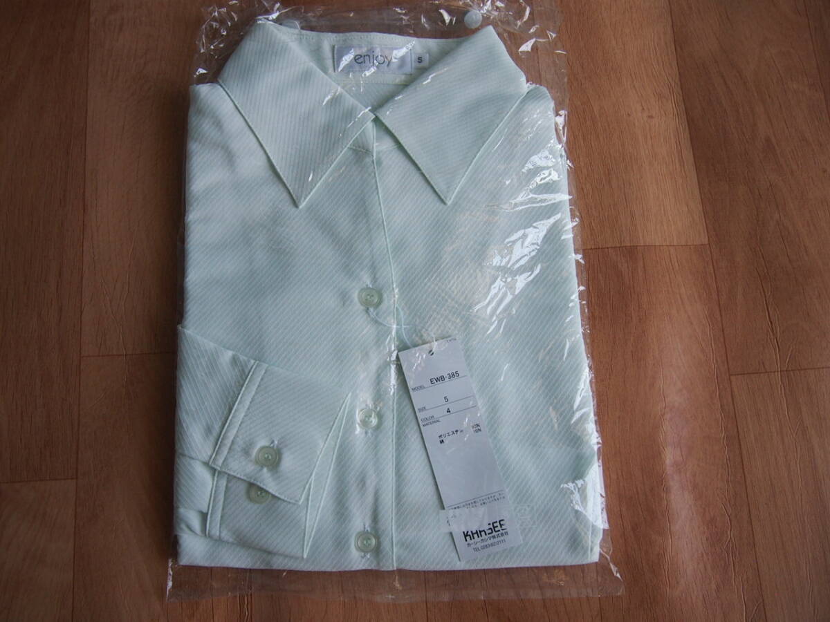 - OL制服・事務服enjoy薄緑織ストライプ長袖ブラウス(EWB385)