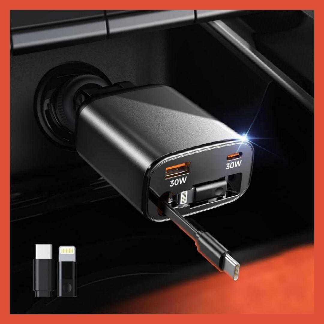 - シガーソケット105W急速充電 車載 車 充電器 巻き取り式 三台同時充電