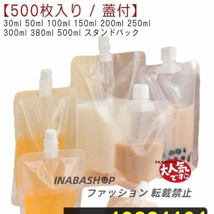 - パウチ ふた付 500枚入り スパウトパウチ 透明 30ml 50ml 100ml 150ml 200ml 250ml 300ml 380ml
