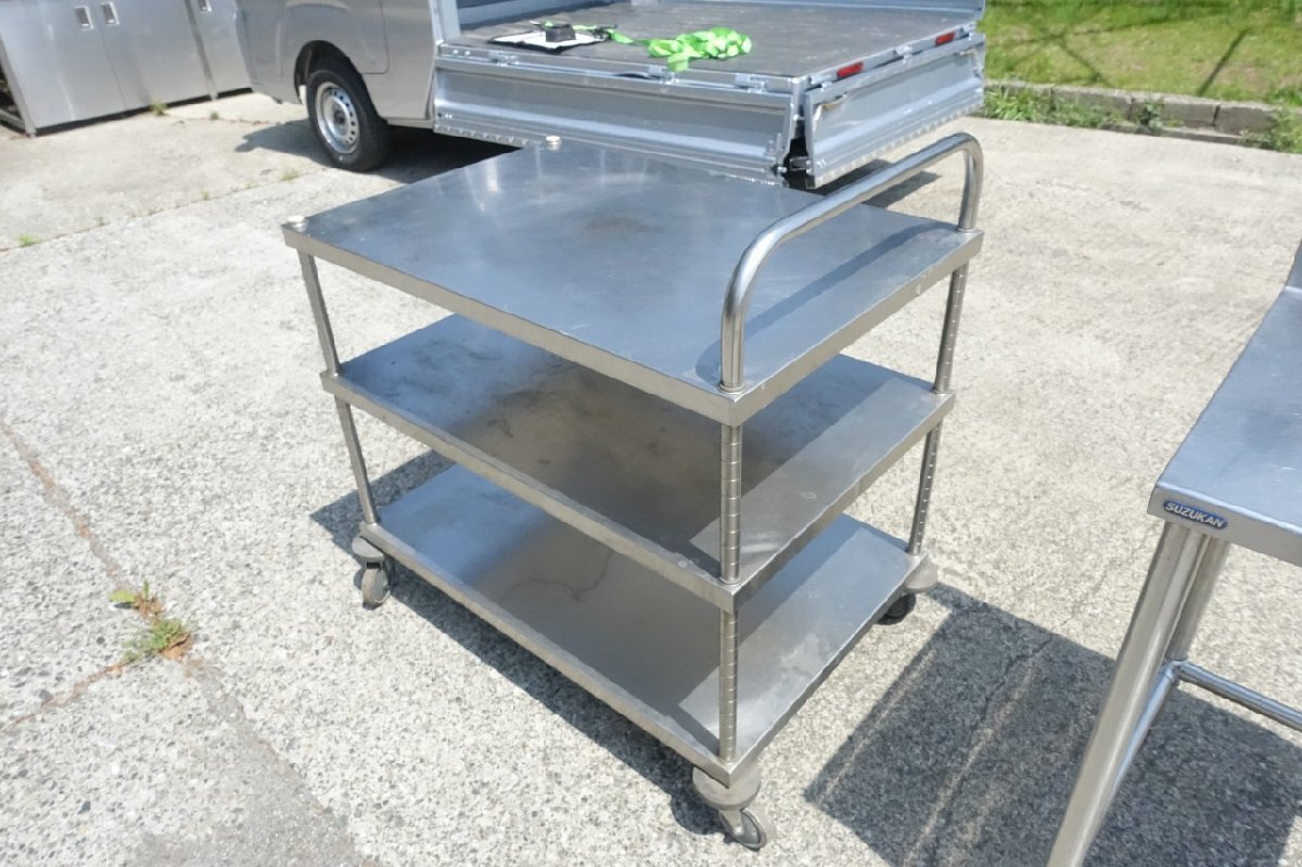 > 静岡県発 97*68*96cm ステンレス 3段 キャスター付きワゴン 業務用 店舗 配膳車 カート 厨房 ラック サービスワゴン