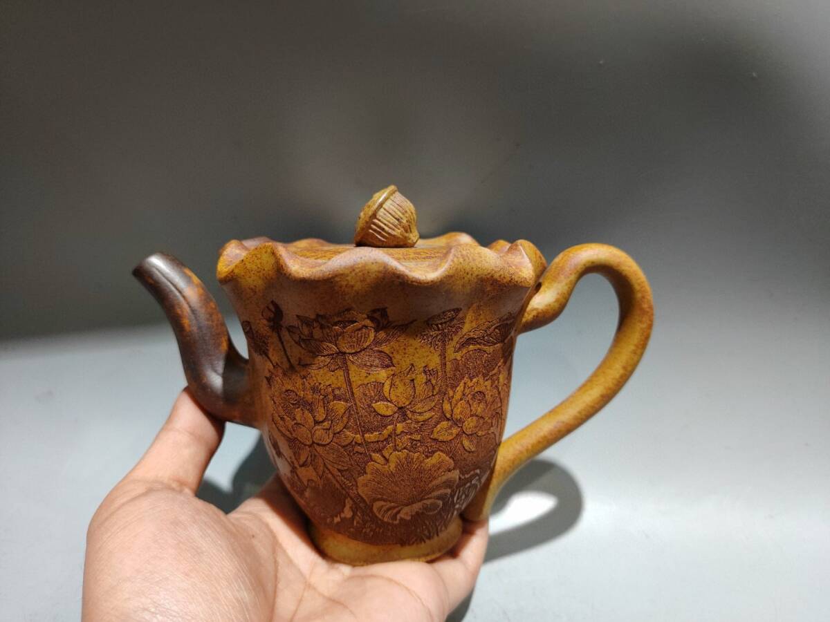 - ▽鴻▽ 茶具 紫砂壺 蓮蓬壺 龍骨金砂 陳紅款 茶壺 酒壺 急須 茶道具 茶道品