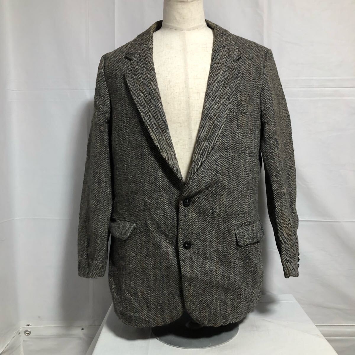 > Harris Tweed ハリスツイード ポーランド ウール テーラードジャケット センターベント ブラウン系 シングル ブレザー 古着 M
