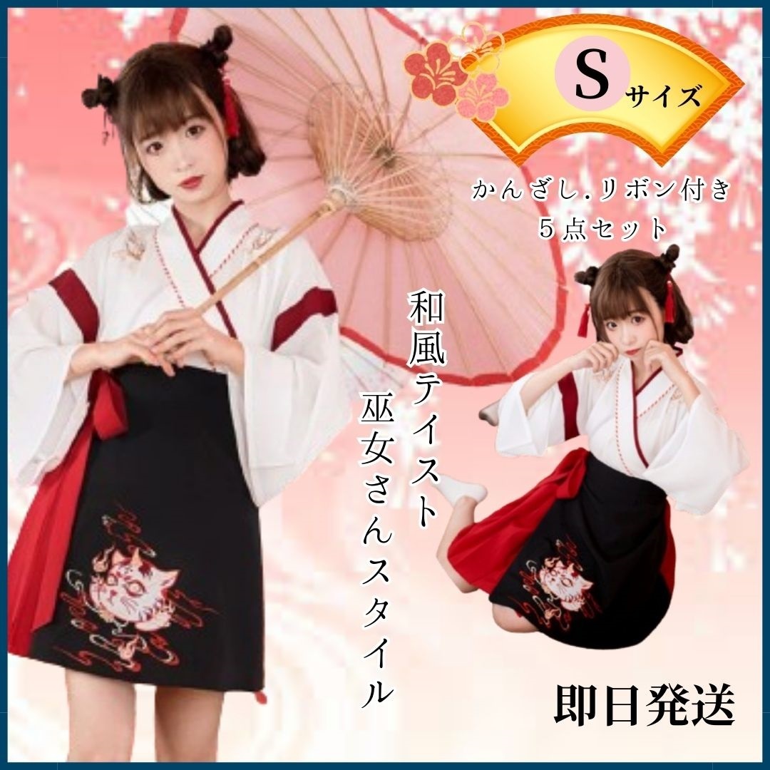 - Sサイズ 白 巫女 コスプレ ハロウィン クリスマス 大正ロマン セットアップ セット 帯付き 猫 浴衣 猫又 巫女服 レディース メンズ 女装