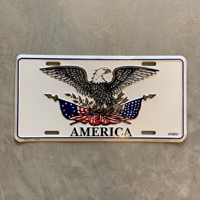 > 【15.2㎝×30.0㎝】80s USA製 AMERICA 鷲 サイン ナンバープレート■ビンテージ アンティーク アメリカ雑貨 ブリキ看板 イーグル 星条旗
