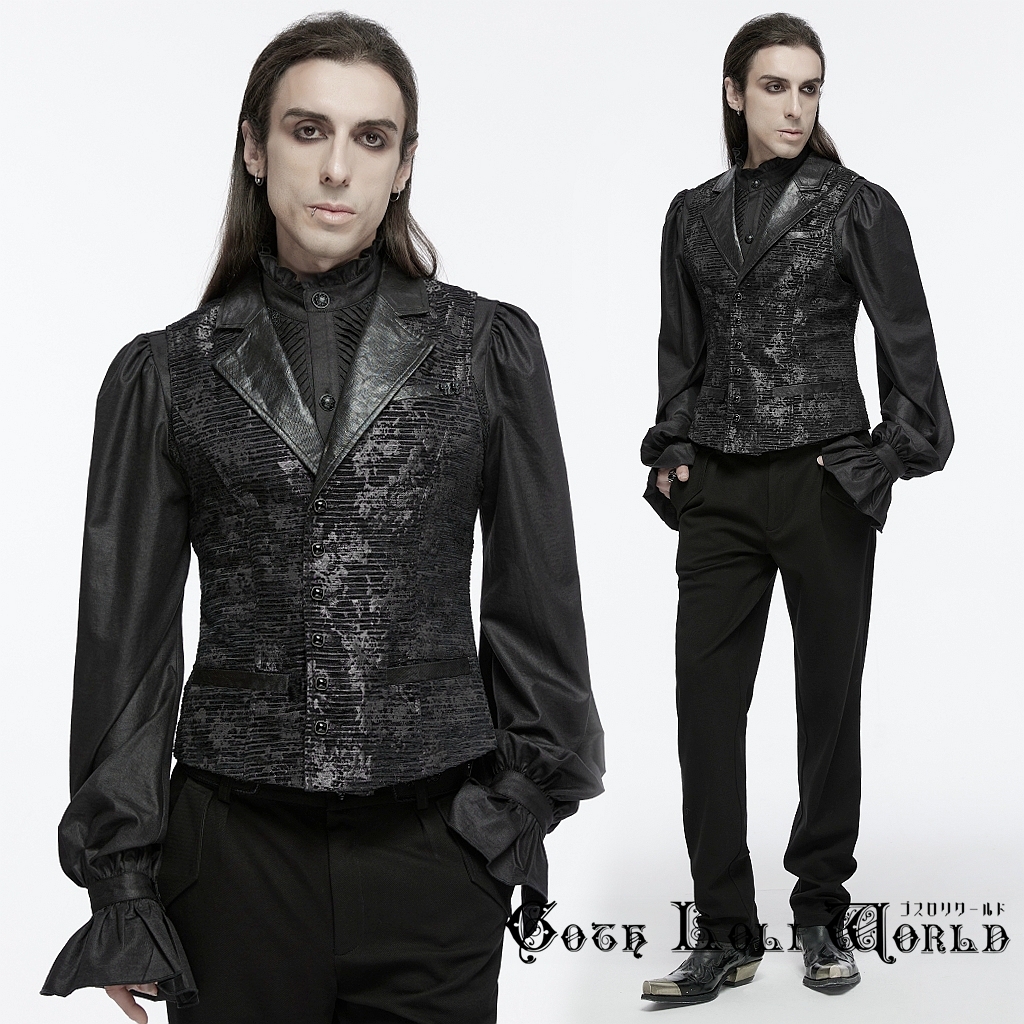 > 即納 WY-1698MJM-BK-L ゴシックファション ベルベッド ベスト ジレ 黒色 ブラック 紳士 ジェントルマン 貴族 スチームパンク ビジュアル系