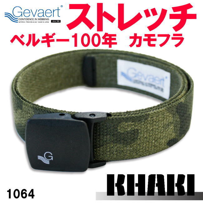 - カーキ 1064 ゲバルト カモフラ ベルト ベルギー 100年 日本製 ストレッチ