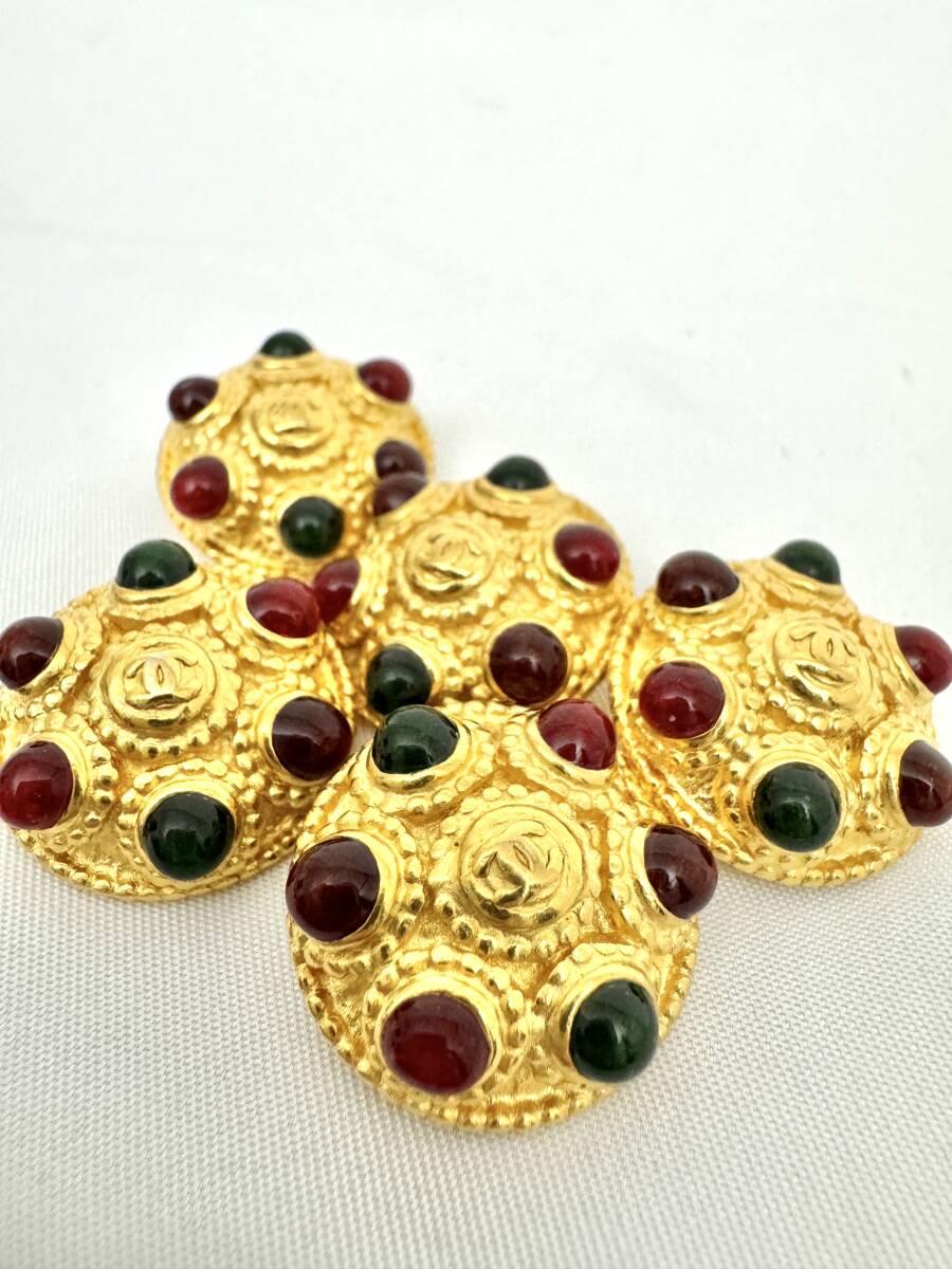 > 7D2708【本物保証】シャネル グリポア ボタン 5個 セット レッド グリーン ストーン ココマーク ゴールド vintage CHANEL ②