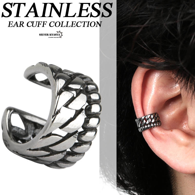 - ステンレス イヤーカフ シルバー 2連 喜平チェーン ダブルチェーン イヤーカフ 片耳用 UNISEX イヤークリップ ピアス