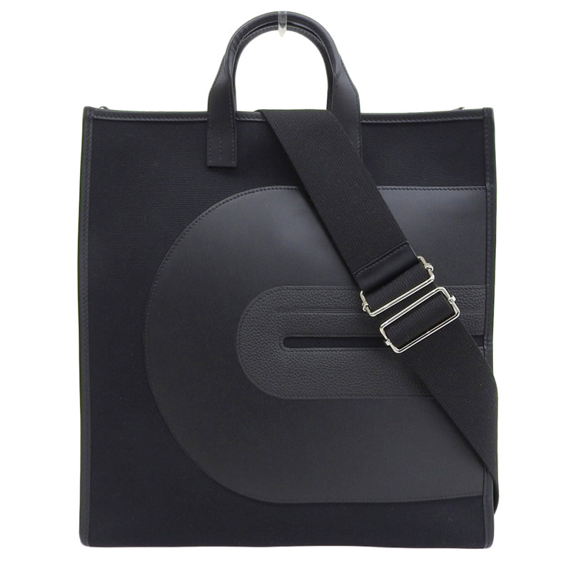 - エルメス HERMES オリゾンレコード 2WAY ハンドバッグ ショルダーバッグ キャンバス レザー ブラック Y刻印 2020年 中古 新入荷 HE1057