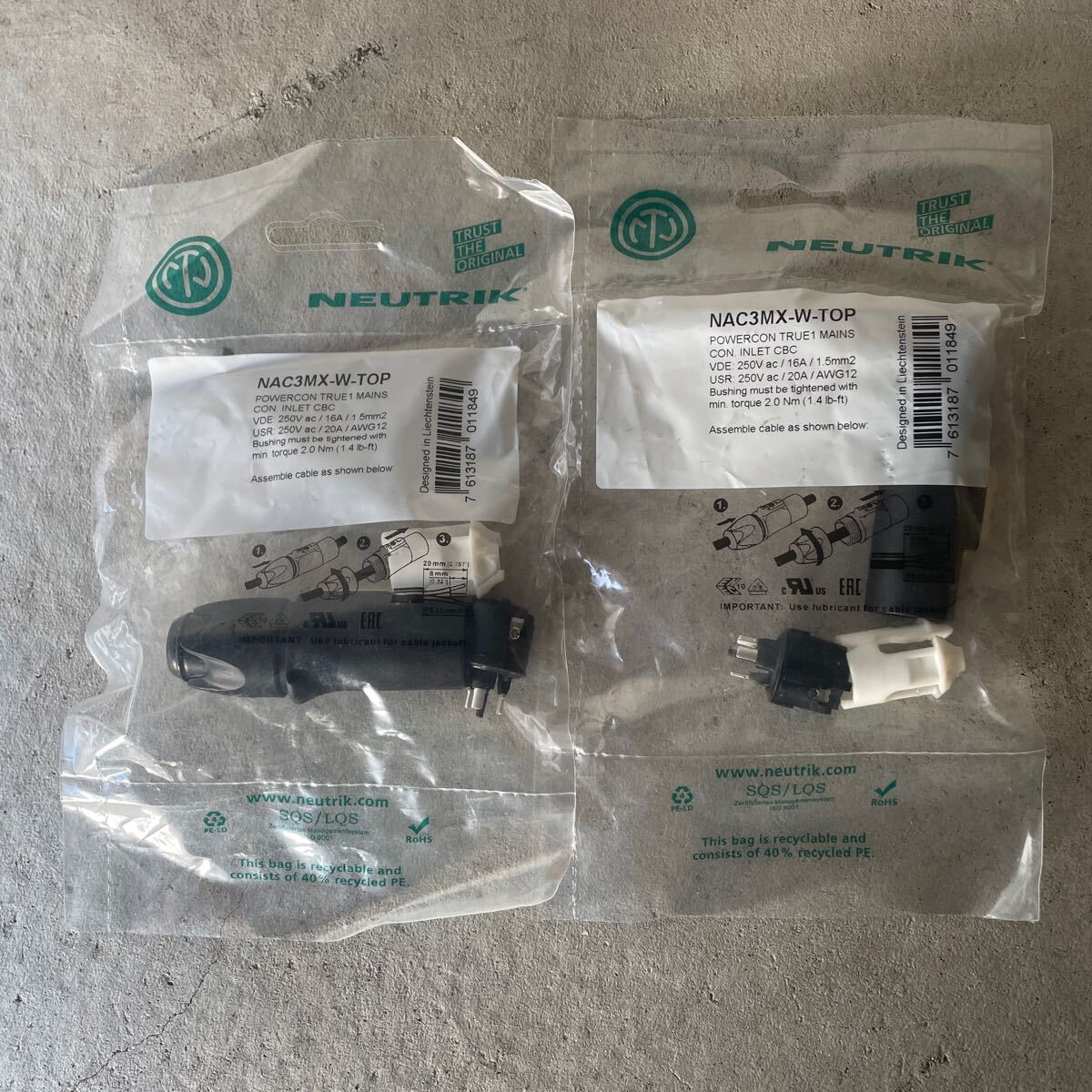 - 新品未使用品 NEUTRIK ノイトリック NAC3MX-W-TOP 2個セット POWER CON電源用コネクター 活線挿抜可能