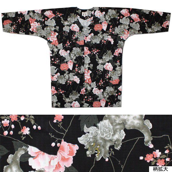 - お祭用品/肉襦袢 鯉口シャツ 唐獅子牡丹大柄 154A黒 小(大人用)
