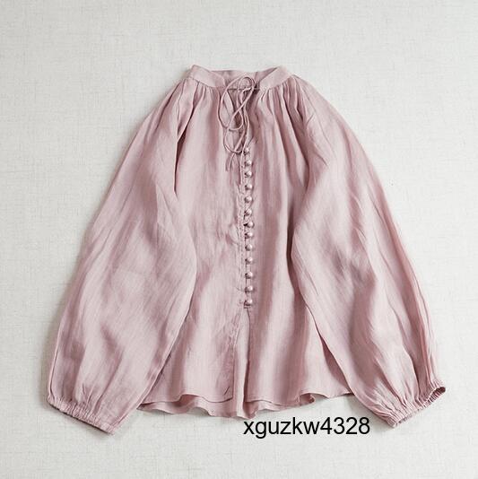 - 人気品ワイシャツ チュニック ゆったり フリーサイズ ナチュラル 苧麻100% 肌触りいい オフピンク お色選択可/XS122