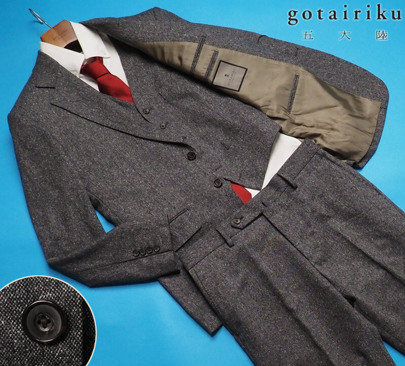 - 新品サンプル定価17万円 gotairiku 五大陸 秋冬『MARLANE マルラーネ 伊製生地』ツイード スリーピース スーツ38(A6)灰(804) SVGOCW9017