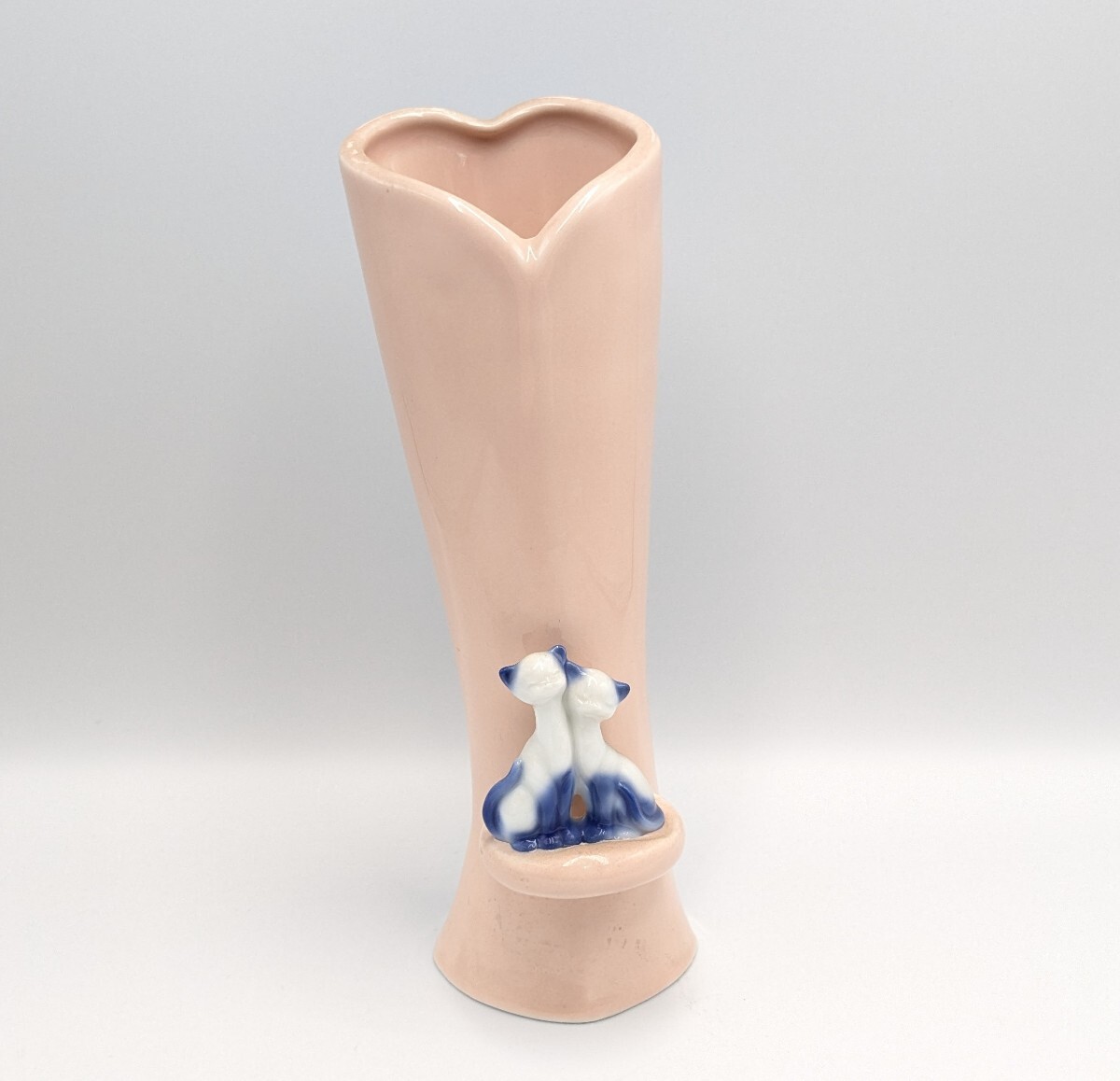 - アンティーク フラワーベース ハート ネコ 昭和レトロ 陶器