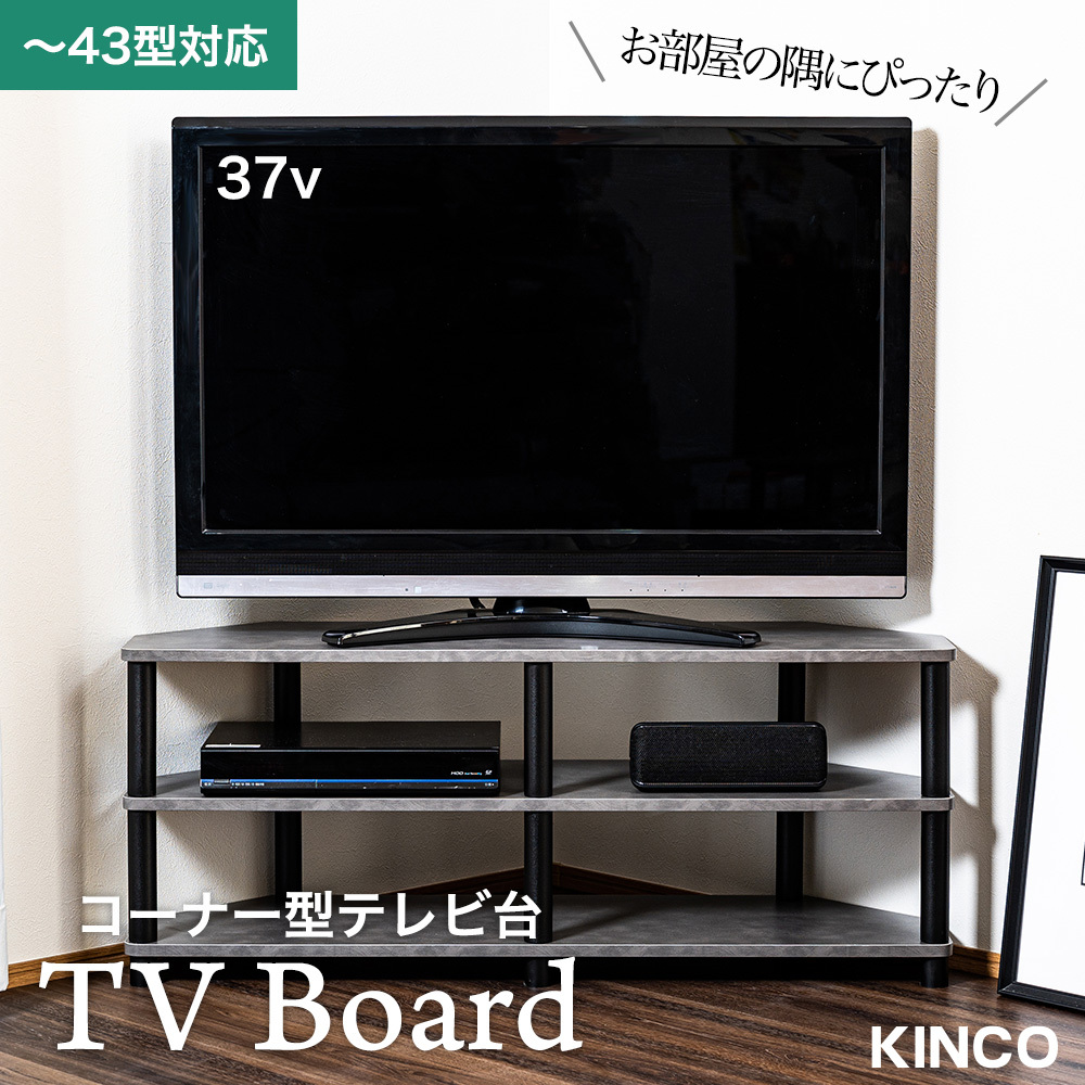 > テレビ台 コーナー用 43型対応 モルタルグレー×黒 工具不要 AVボード ローボード TVラック +800円でキャスター付きに変更可能 TVC EB 1