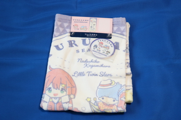- ゆるキャン△×サンリオ フェイスタオル 白×薄紫 34×75㎝ ステッカー付 新品 未使用