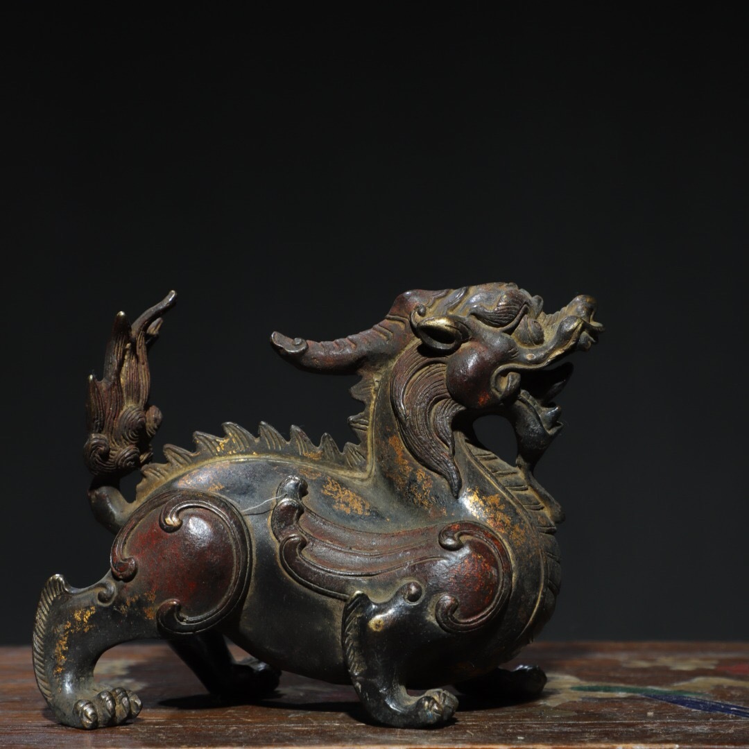 - 【超珍館蔵】銅製 拓金 瑞獣 置物 賞物 古賞物 古美術品 稀少珍蔵品