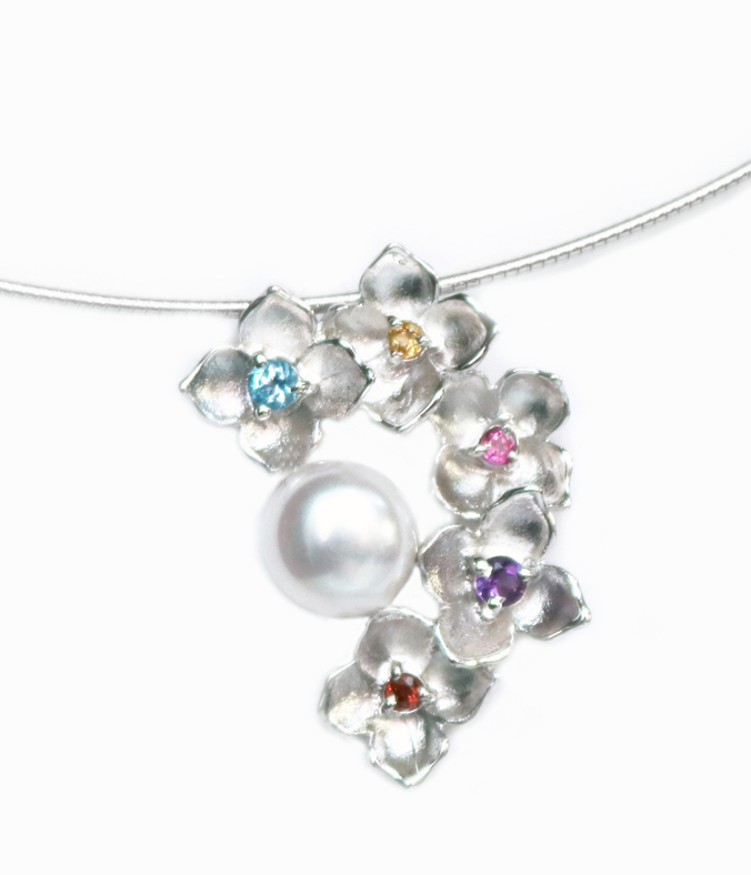 - SV925パール フラワーペンダント・オメガネックレス付き(ホワイト)