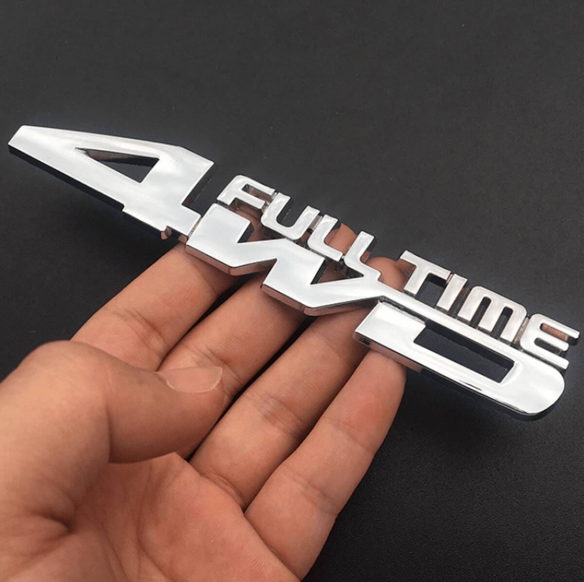 - エンブレム 4WD フルタイム ステッカー 15.5cm 金属 シルバー 車外アクセサリー 車用 ロゴ バイク かっこいい FULL TIME 外装 シール t3528