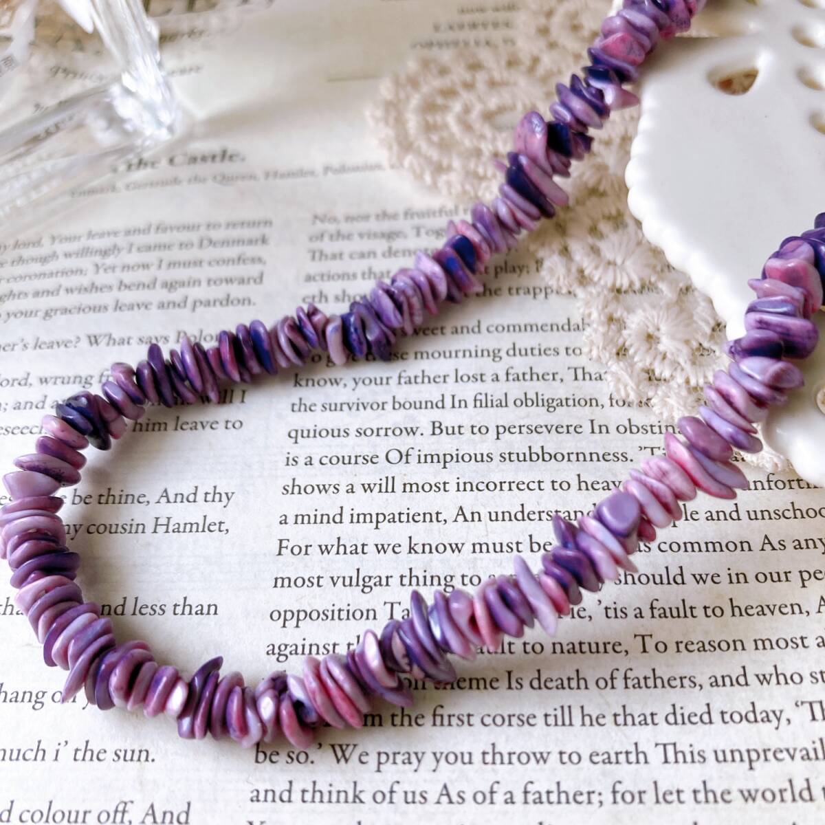 - シェルビーズネックレス パープル さざれ ビーチジュエリー☆☆vintage jewelry accessoriesR0437