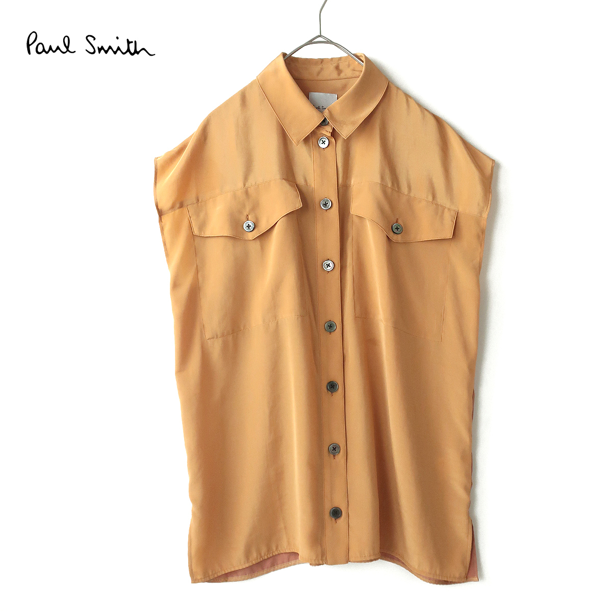 - 【美品】Paul Smith 微光沢ドレープサテン生地 リラックスフィット◎ドルマンシャツ イエロー (38)