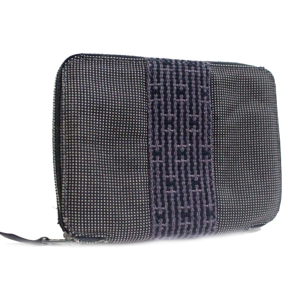 > エルメス パースPM ラウンドファスナー エールライン 二つ折り財布 ユニセックス キャンバス グレー 中古 HERMES