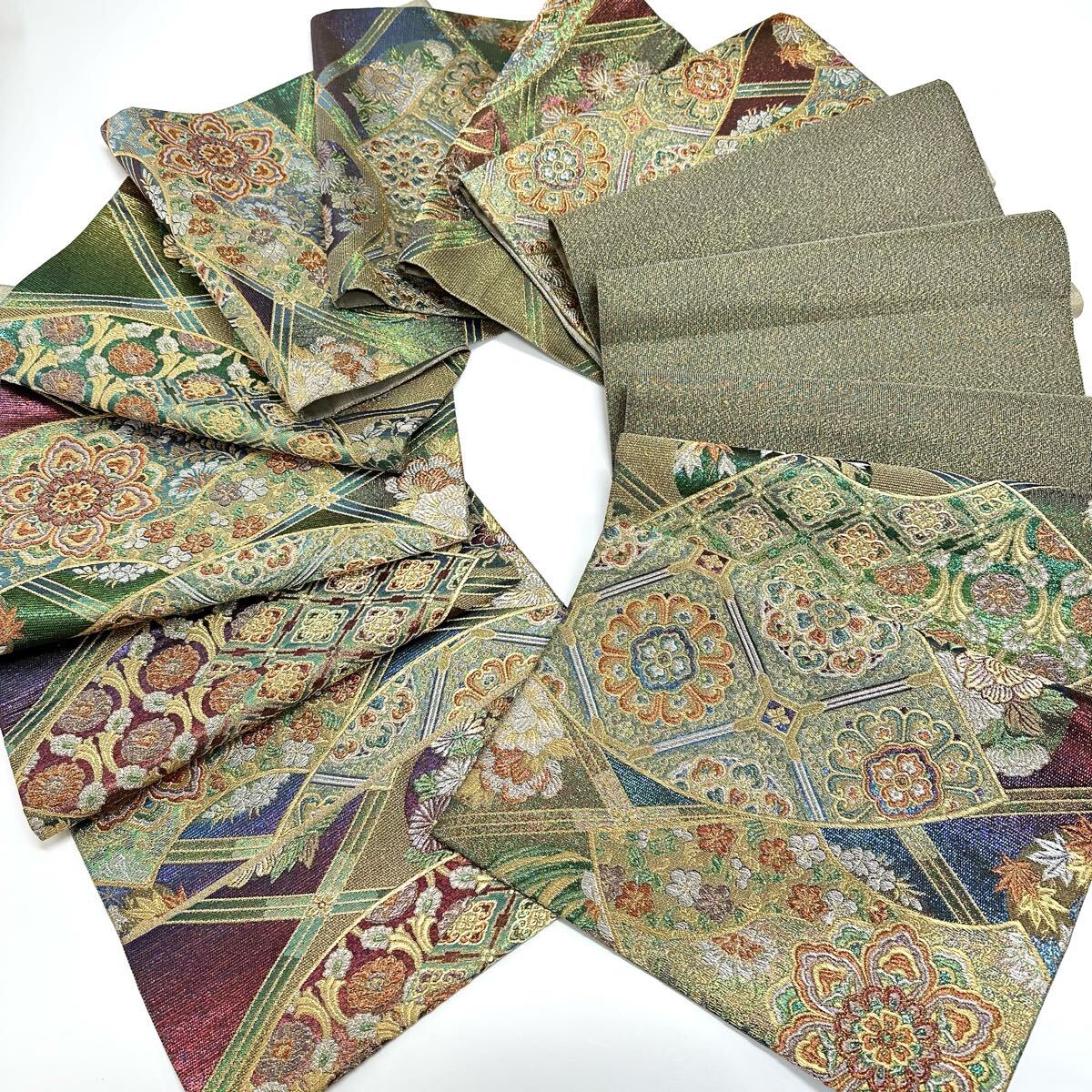 > 【七福】c505 逸品 高級品 正絹 袋帯 六通 陽文綴 四季花 華文 引箔 金糸 銀糸 刺繍 豪華