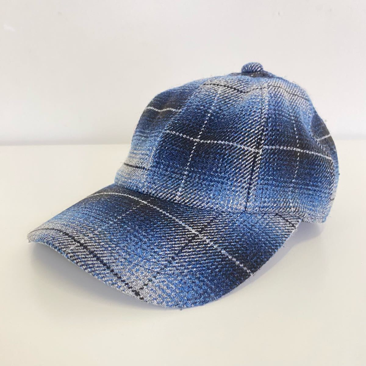 > ★ HICOSAKA オンブレチェック キャップ ブルー ◆ ツイード ベルト付 野球帽 帽子 ユニセックス ヒコサカ ◆W10 SLん9P-25