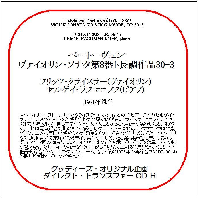 - ベートーヴェン:ヴァイオリン・ソナタ第8番/フリッツ・クライスラー/ダイレクト・トランスファー CD-R