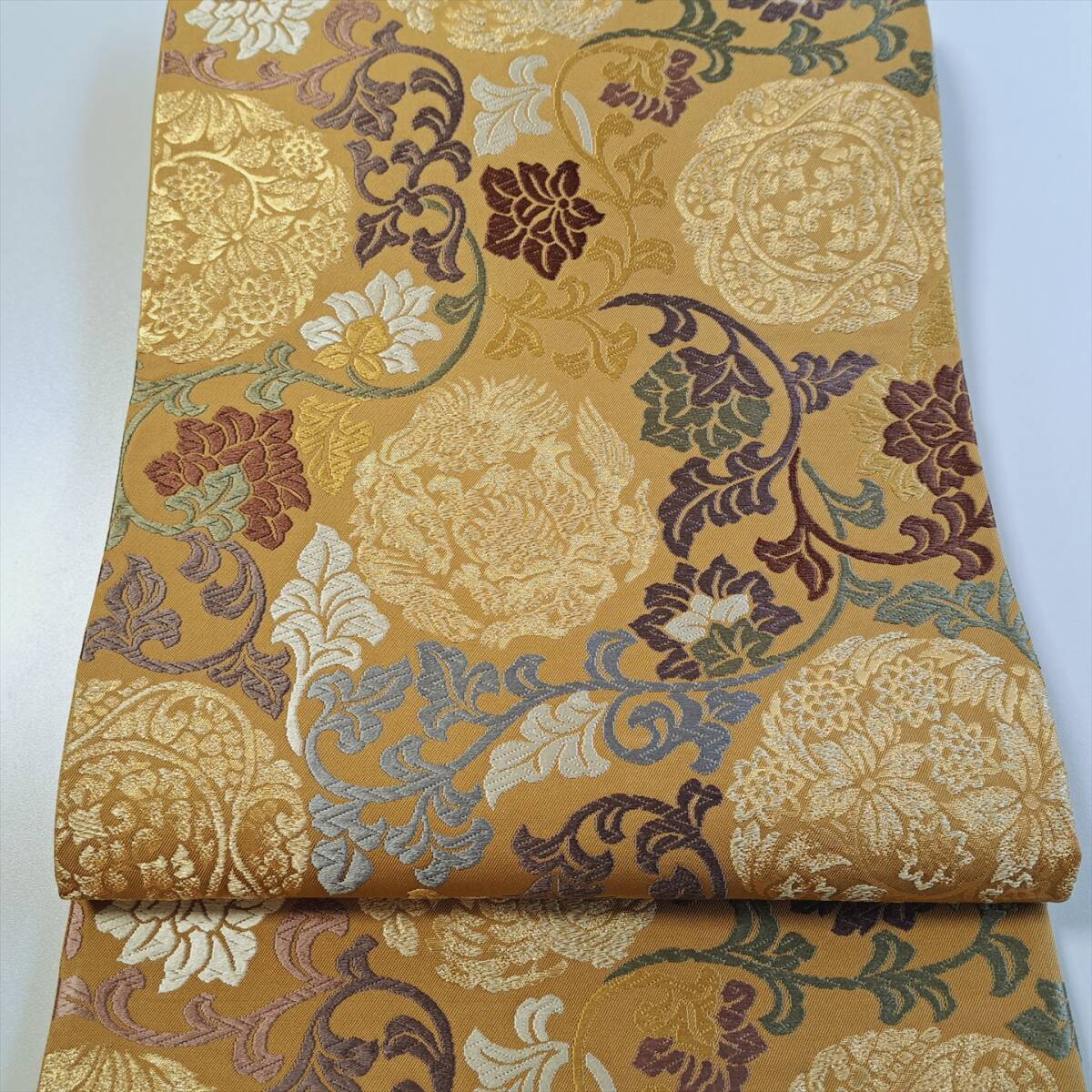 - 即決■着物の越田■幅31長さ428 正絹 袋帯 ★美品★ 唐織 花唐草 六通 金糸有 ■ふ30J02