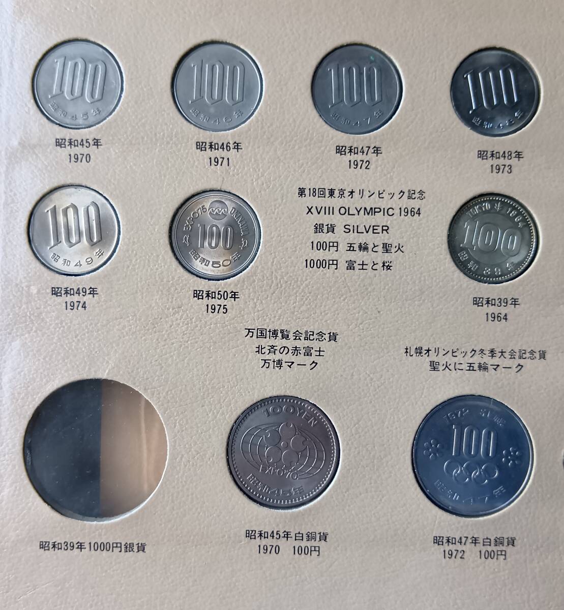 - 現行貨幣年号別アルバム 昭和23年~昭和50年 東京、札幌オリンピック100円、大阪万博100円などあり