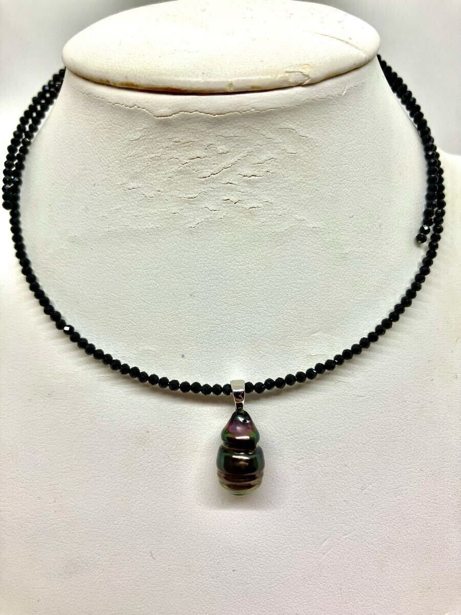 - 【新品】南洋真珠ネックレス*黒蝶ネックレス*大粒*バロック*シンプル*ブラックスピネル形状記憶*天然パール*サークル*虹色