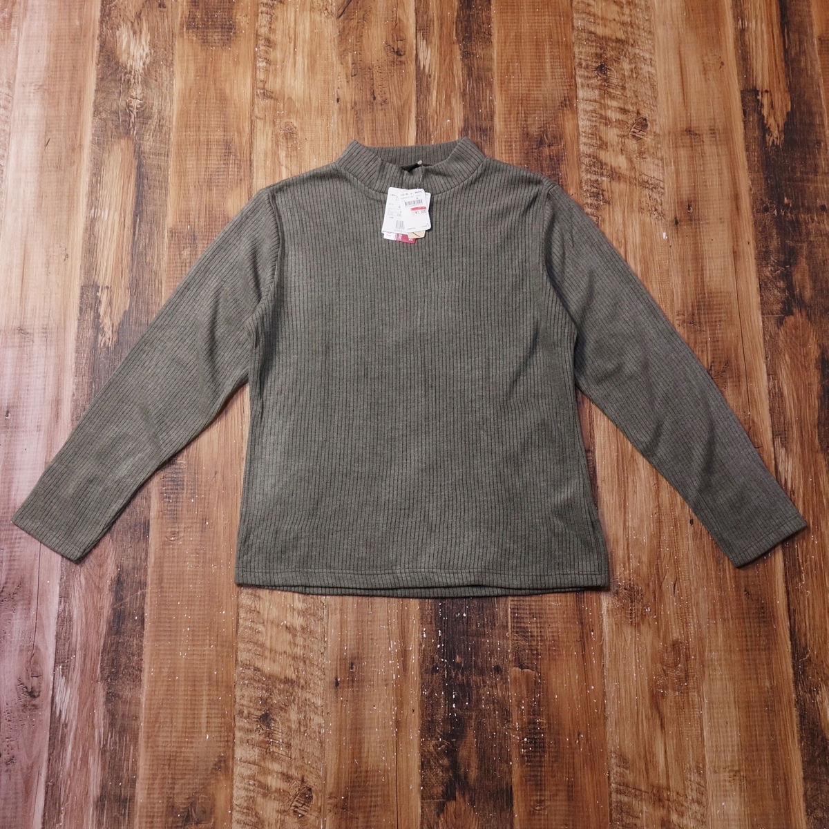 - 未使用 リブモックネックカットソー レディース トップス 長袖 秋冬 LL カーキグリーン PE2