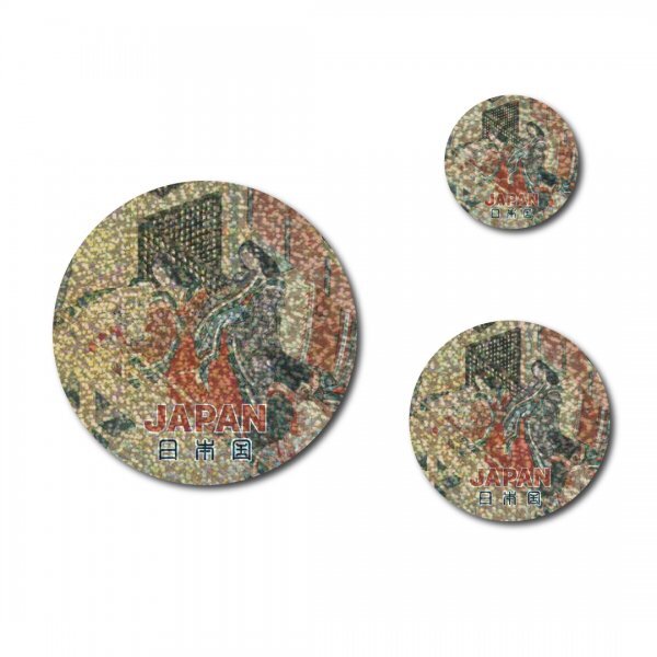 - 日本製 浮世絵 ステッカー 3点セット 丸型 新品 女性 ホログラム グロス 日本の美しさ お土産 プレゼント おしゃれ キラキラ 派手 和柄