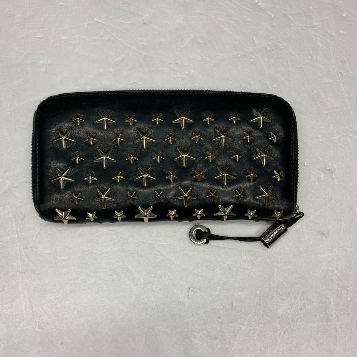 > 1538 ジミーチュウ 長財布 JIMMY CHOO 財布 スタースタッズ レザー ラウンドジップ 黒 ブラック
