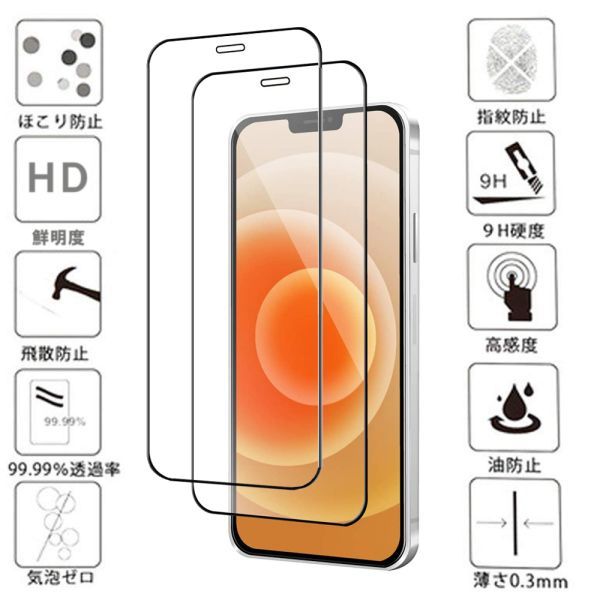 - 黒 iPhone 12 ガラス フィルム アイフォン 衝撃吸収 画面 保護 液晶 カバー シート シール スクリーン Glass Film 9H アップル apple