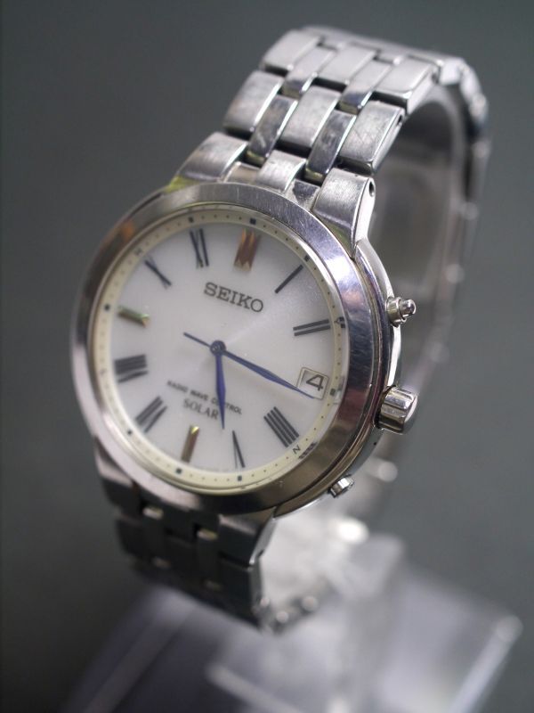 - セイコー SEIKO ラジオウェーブコントロール SOLAR 3針 デイト 純正ベルト 7B52-0AH0 男性用 メンズ 腕時計 aa717 稼働品