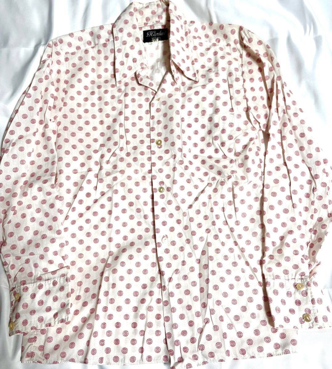 - 希少!70'sビンテージ 総柄ポリシャツ 長袖シャツ メキシコ製 小さめM