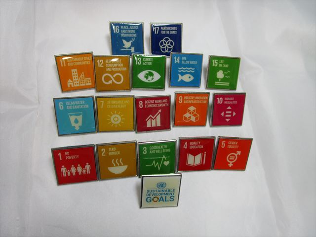 - SDGsピンバッジ(国連ブックショップ購入・送料無料)(17個のアイコンピンバッチと1個のSDGsロゴのピンバッチセット)ラバークラスプ素材 N98