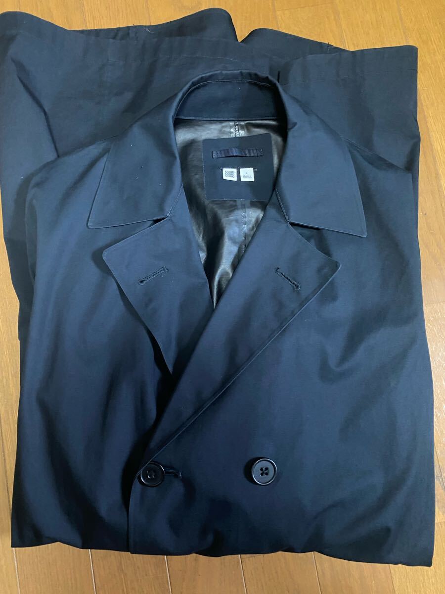 - ユニクロUUUネイビー Lサイズ ダブルレインコート スプリングコート ビジネス 通勤通学 裏側防水