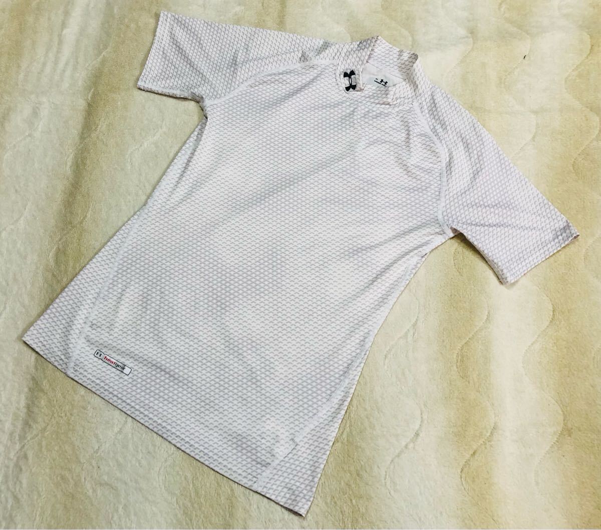 - ☆アンダーアーマー☆ヒートギア コンプレッション モック 半袖 Tシャツ XL 白系 総柄 トレーニング インナー 1330046
